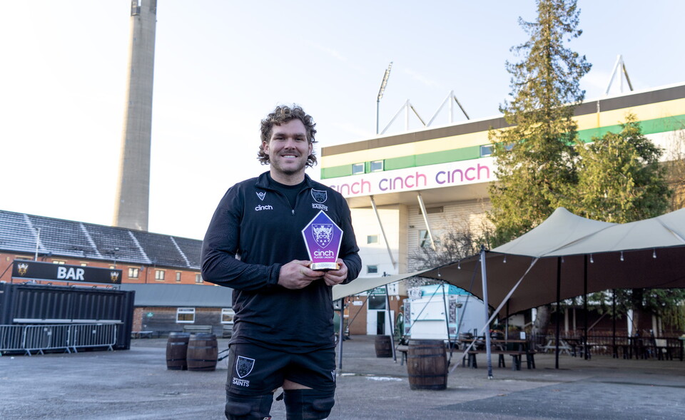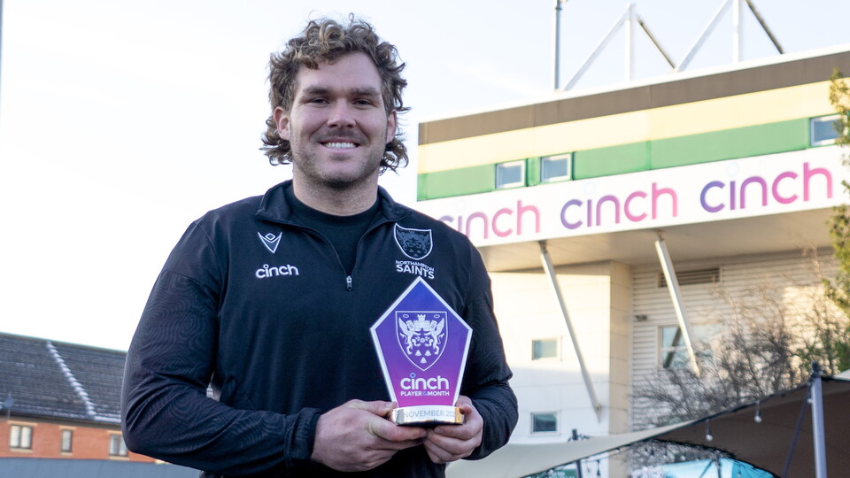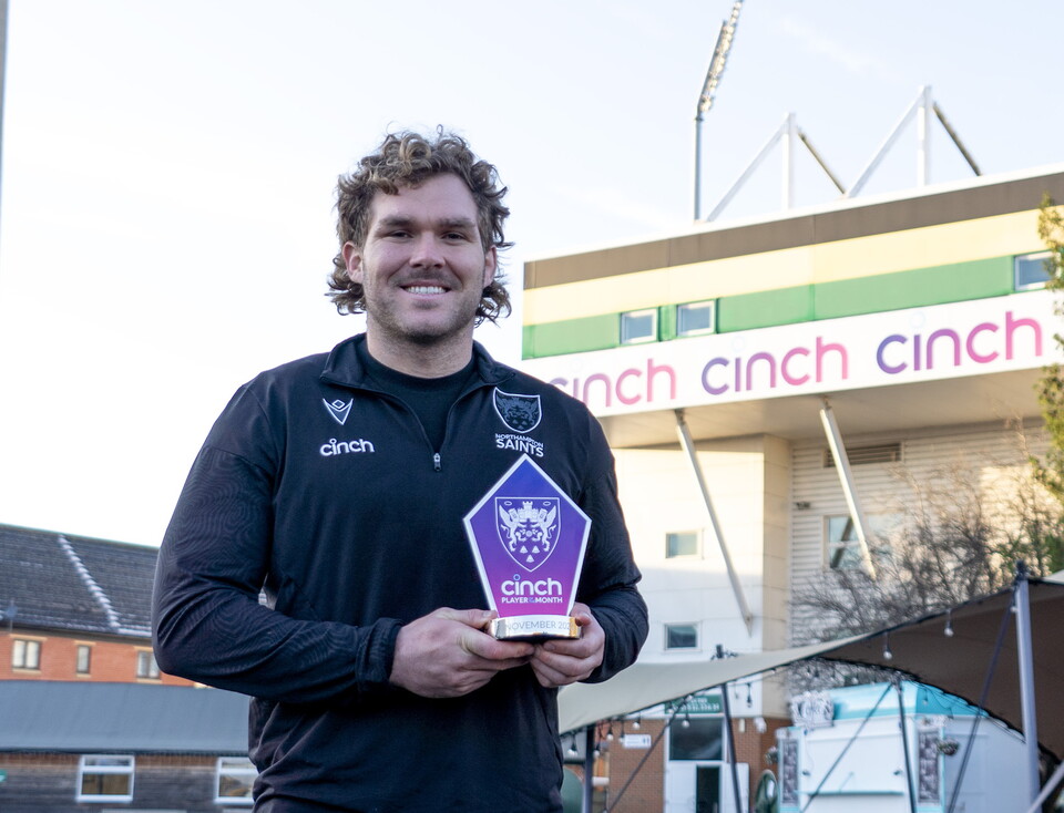 Northampton Saints’ Angus Scott-Young has been named the cinch Player of the Month for November, with the back row claiming his first gong in Black, Green and Gold for a series of stellar performances throughout the month.