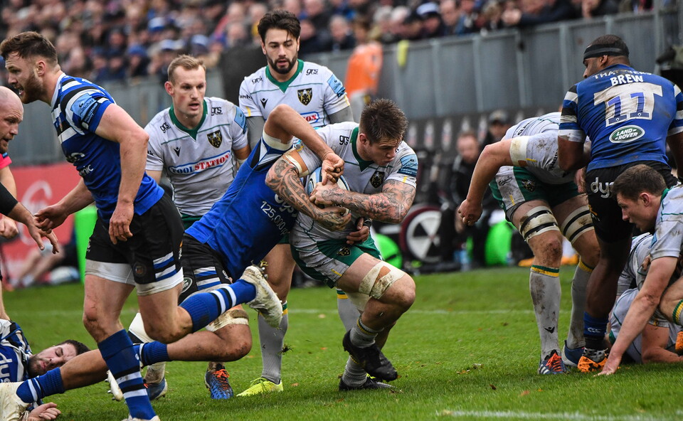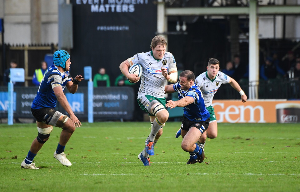 A well-executed lineout move involving Henry Taylor and Mike Haywood then released Jamie Gibson to carry up to Bath’s five-metre line, but despite knocking on the door Northampton were foiled as Freddie Burns made a good hit on Taqele Naiyaravoro.