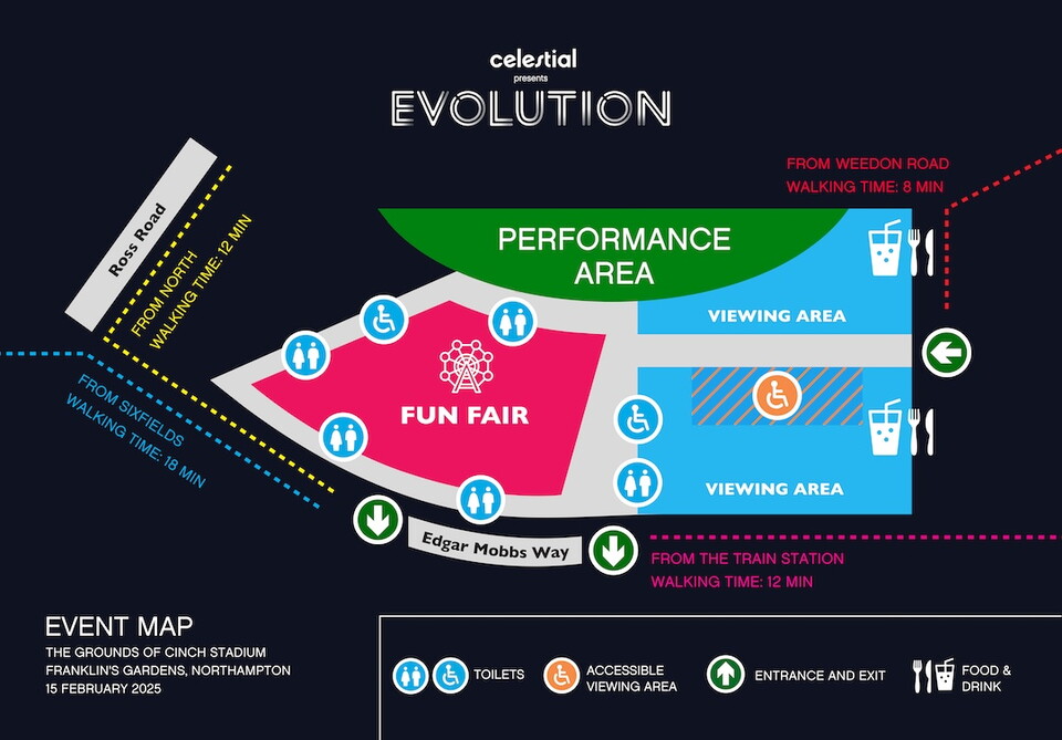 The festival-style event is set to be hosted in Car Park D at cinch Stadium at Franklin’s Gardens by Northampton Saints, Celestial (creators of drone light shows for brands across the globe), and Yuup (the local experiences company).