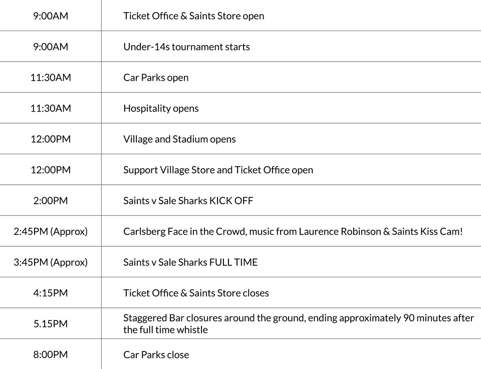 SAINTS V SALE SHARKS TIMINGS