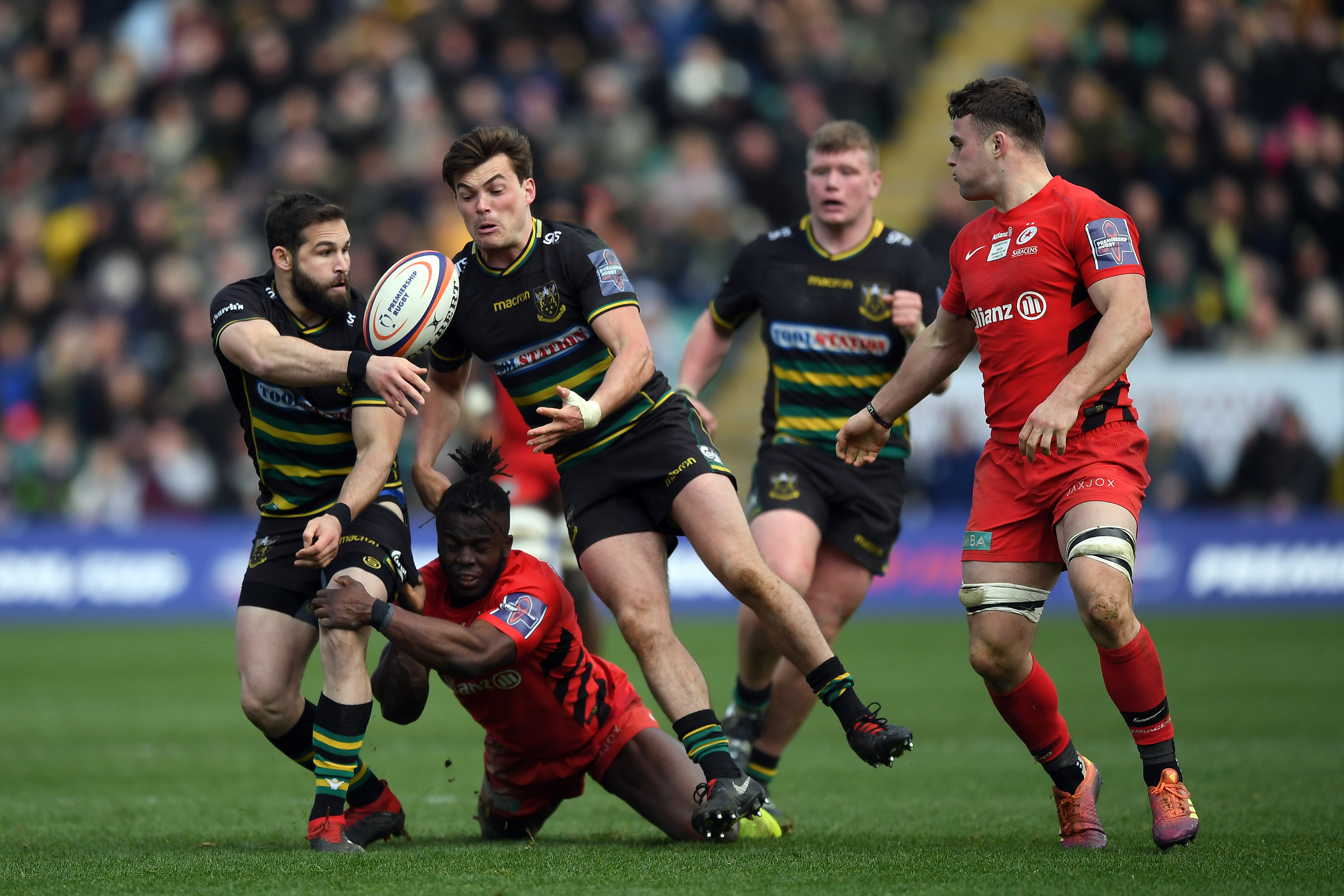 Piers Francis and Rory Hutchinson will start together in the midfield, while Saints’ half-back duo of Cobus Reinach and Dan Biggar will look to pull the strings in Clermont.