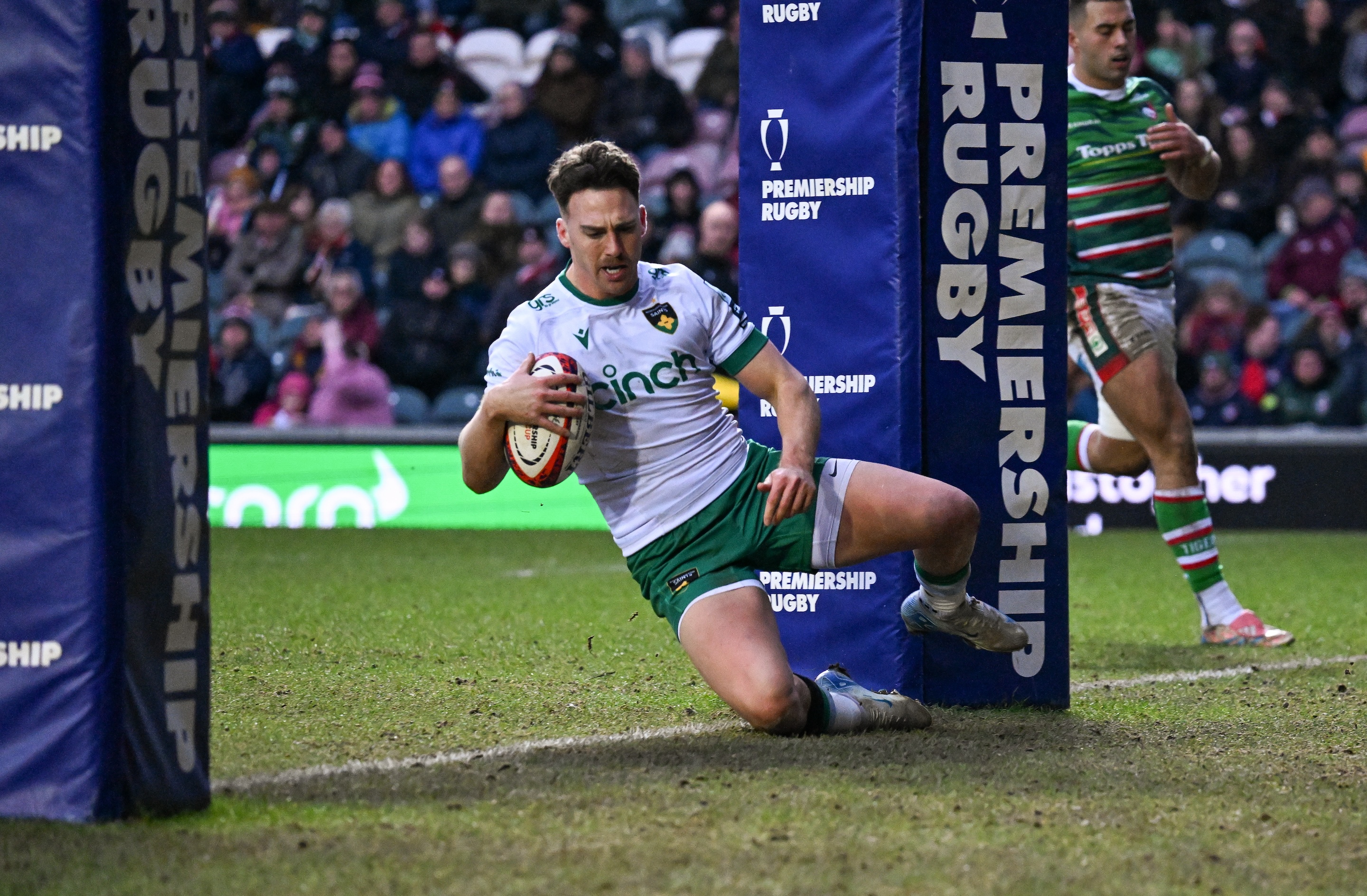 Saints were yet to fire a shot and got close when scrambled Tigers ball gave them possession in Leicester’s 22, but a loose pass was well read by Ben Volavola to put an end to that effort.