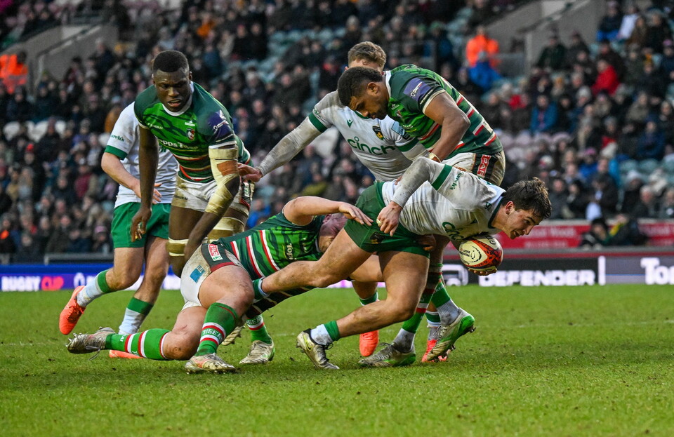 And while Leicester would stretch their lead through Hatherell from close range, James would grab himself a hat-trick and Saints the bonus point on the hour mark when more pressure from Northampton gave James the chance to snipe over.
