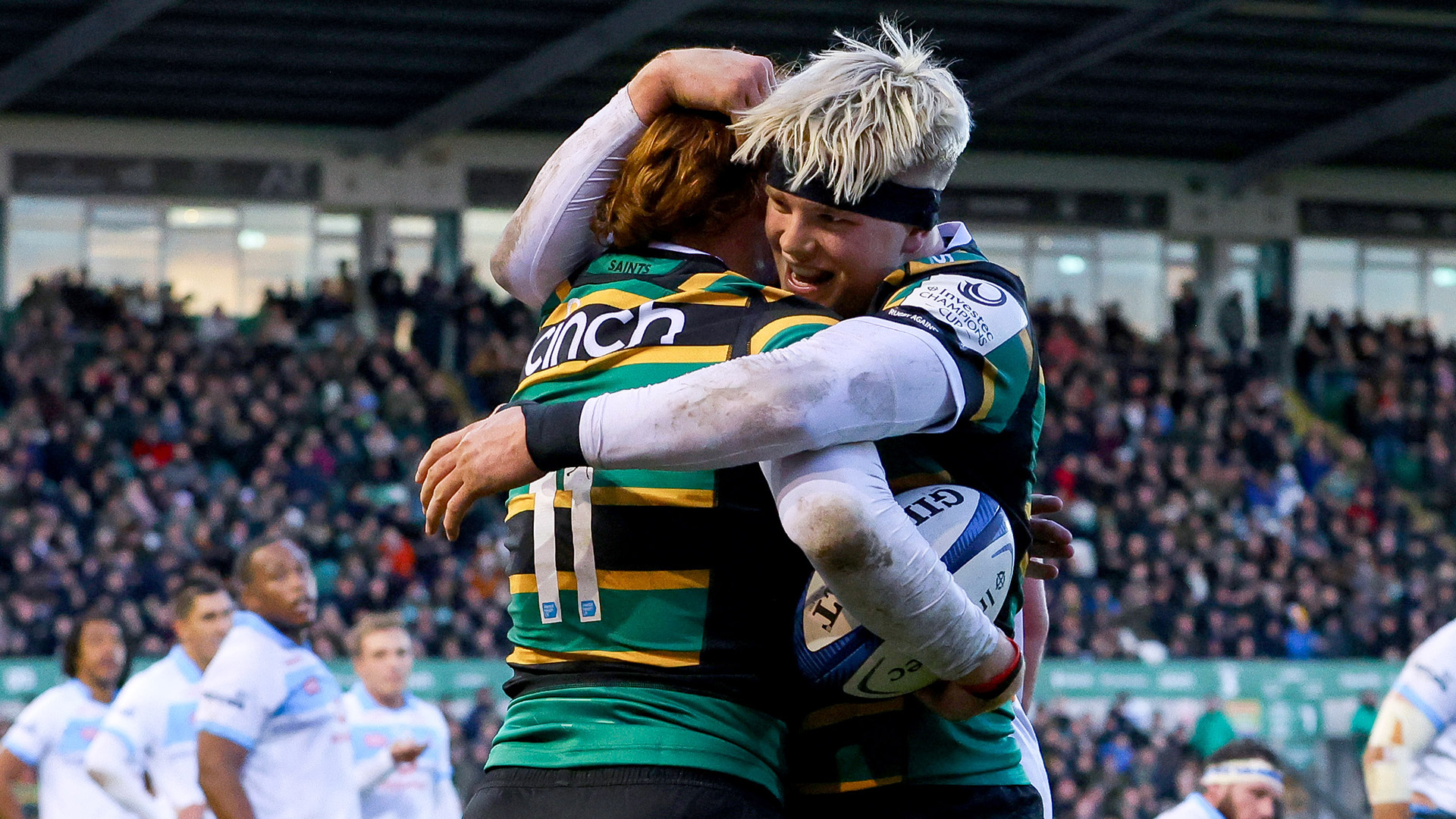 Saints set out their stall with a rapid approach to proceedings with ball in hand coupled with a moment of finesse when Fin Smith dinked a delightful 50:22 kick into touch. While that lineout didn’t stick, George Furbank returned the clearance kick with interest and after a quick recycle at the breakdown, Pollock fixed his man and fed Sleightholme into the right corner for his 50th try in Black, Green and Gold. Smith knocked over a brilliant conversion from the touchline.