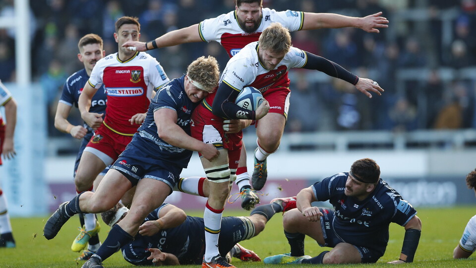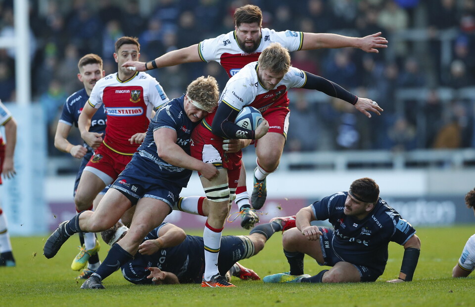 An incredible show of strength from Naiyaravoro prevented Sale from going further clear with ten minutes remaining, as he dragged Reed out of play just a yard out from his own line.