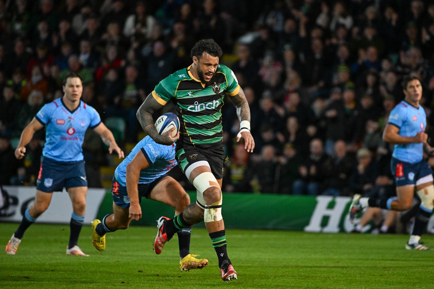 Saints flexed their muscles early doors with Mitchell in the thick of the action, with a blindside snipe and offload falling into touch before he was held up over the line after a Bulls’ lineout was disrupted.