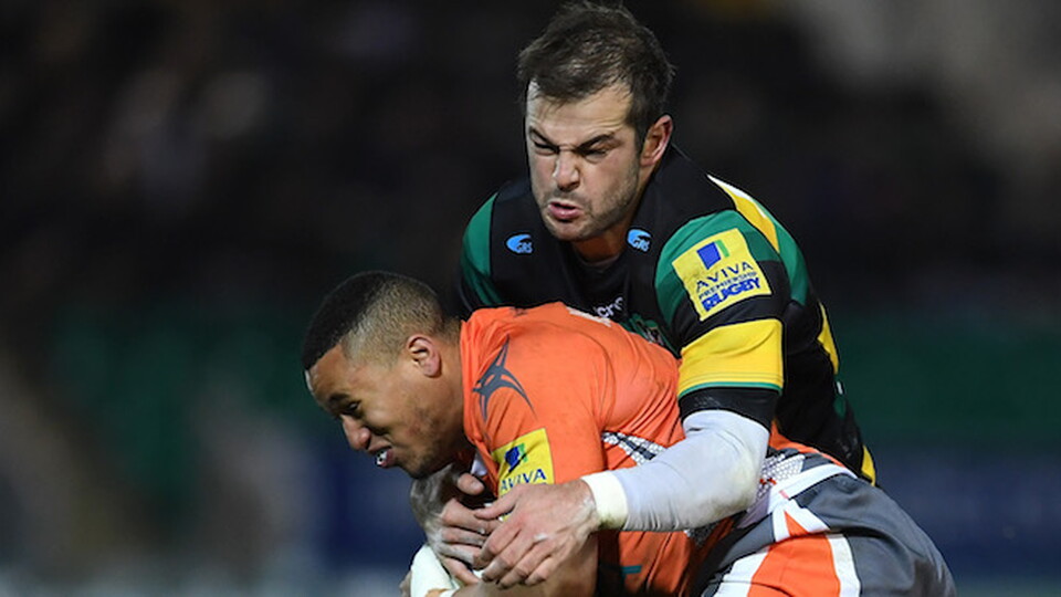 Left disappointed after yesterday’s last minute loss to Newcastle Falcons at home after an intercept try from Vereniki Goneva won the away side the game, Saints’ fly-half Stephen Myler said that the side must dust itself down quickly and focus on heading to Welford Road nest weekend.