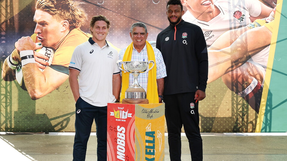 The Cup celebrates an iconic rugby figure from each nation; the first Indigenous captain of the Wallabies, Mark Ella, and England and Northampton Saints legend, Edgar Mobbs.