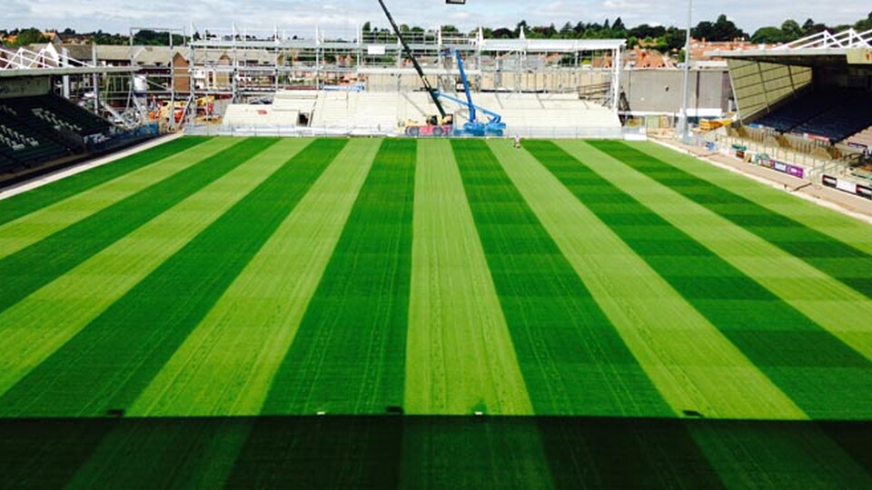 The Rugby World Cup is giving all of the Aviva Premiership’s groundstaff a bit more time than usual to get their pitches in order. Here at Franklin’s Gardens there is also the small matter of the new Barwell Stand being built at one end of the stadium, something which has brought additional challenges.