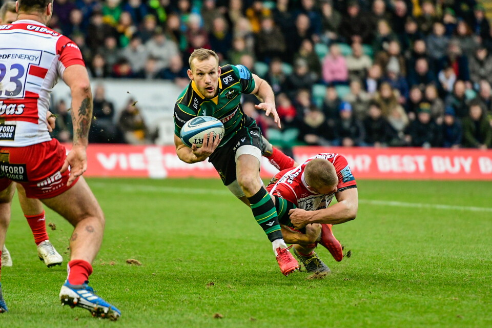 Naiyaravoro came closes to answering for Saints as he bulldozed his way over the tryline before being stripped of the ball by Cipriani, but Northampton did get on the board after 25 minutes as Biggar made no mistake with a penalty from inside the 22 as Gloucester were caught offside.