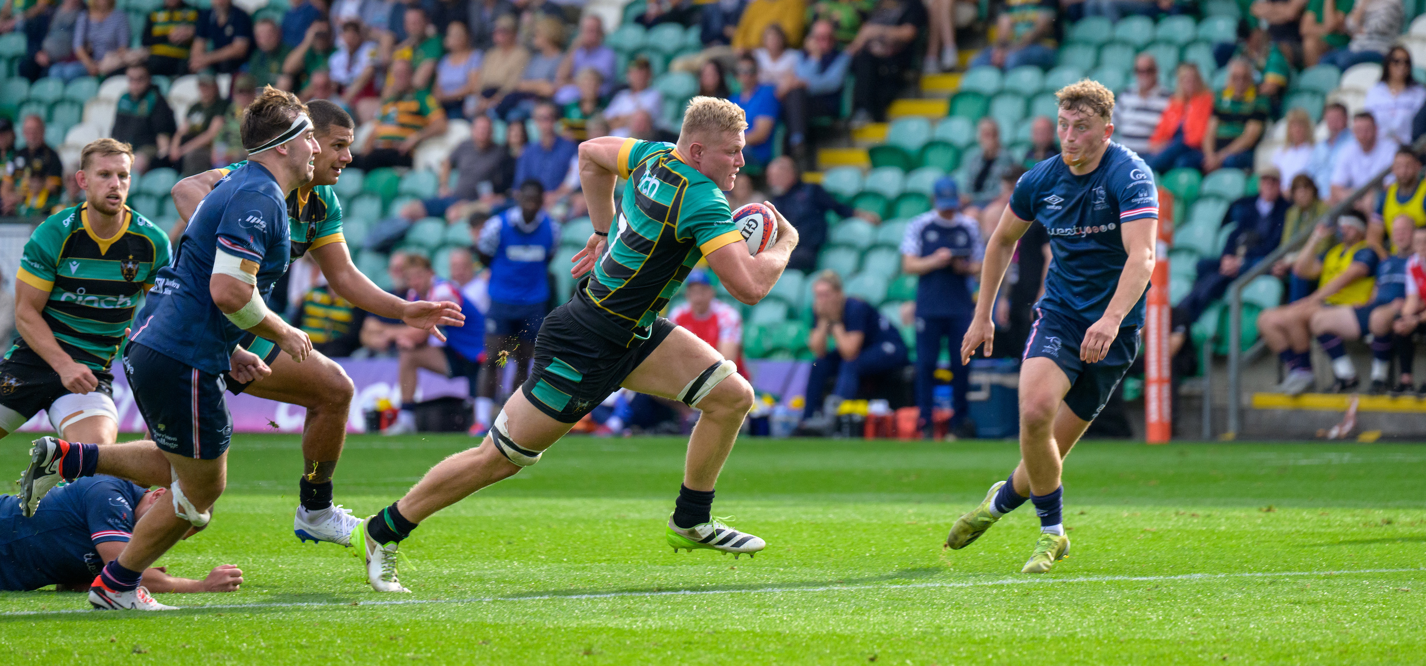 The 23-year-old announced himself to the Gardens crowd in fine form, playing his part in Saints’ 43-42 win over Bath Rugby before grabbing two of Saints’ 12 tries and a Player of the Match medal as the men in Black, Green and Gold ended their Premiership Rugby Cup campaign with an 82-12 win over Doncaster Knights last weekend.