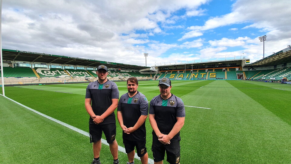 “With the pitch getting mowed numerous times on matchdays alone, the guys cover hundreds of kilometres on foot every week, and battle through the elements – through stifling heat in summer, and driving rain or even snow in winter – to ensure that Northampton Saints’ players enjoy the finest pitch in the Gallagher Premiership.
