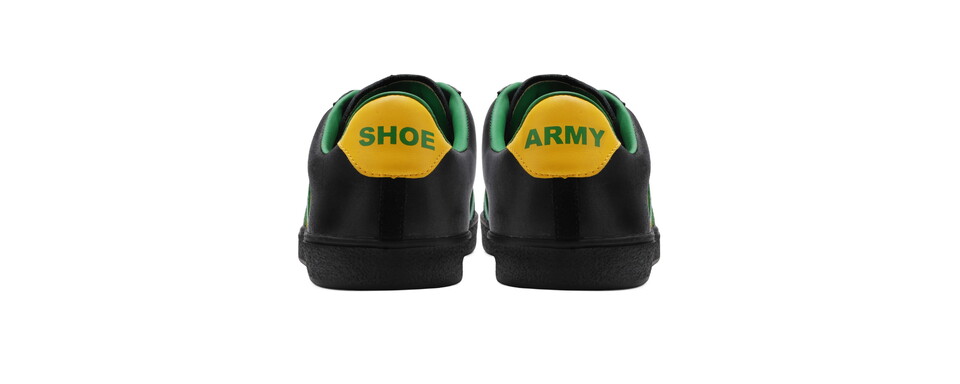 The son of legendary Saint Don White, Ian has designed a unique pair of trainers featuring the Club’s iconic Black, Green and Gold colours, emblem, and the now-famous ‘Shoe Army’ slogan.