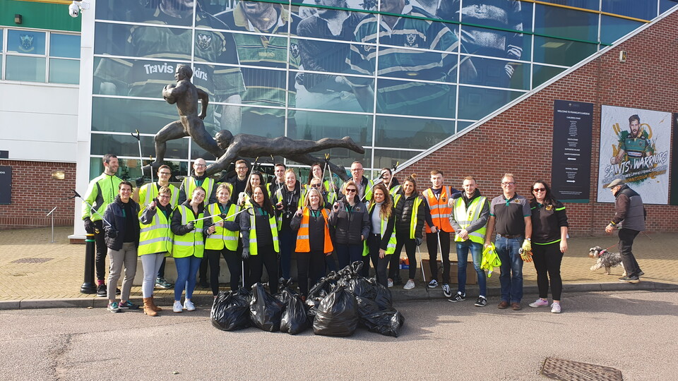 Northampton Saints’ commercial staff today stepped out to clear up St James’ End, undertaking a community litter pick on several streets within The Parish.
