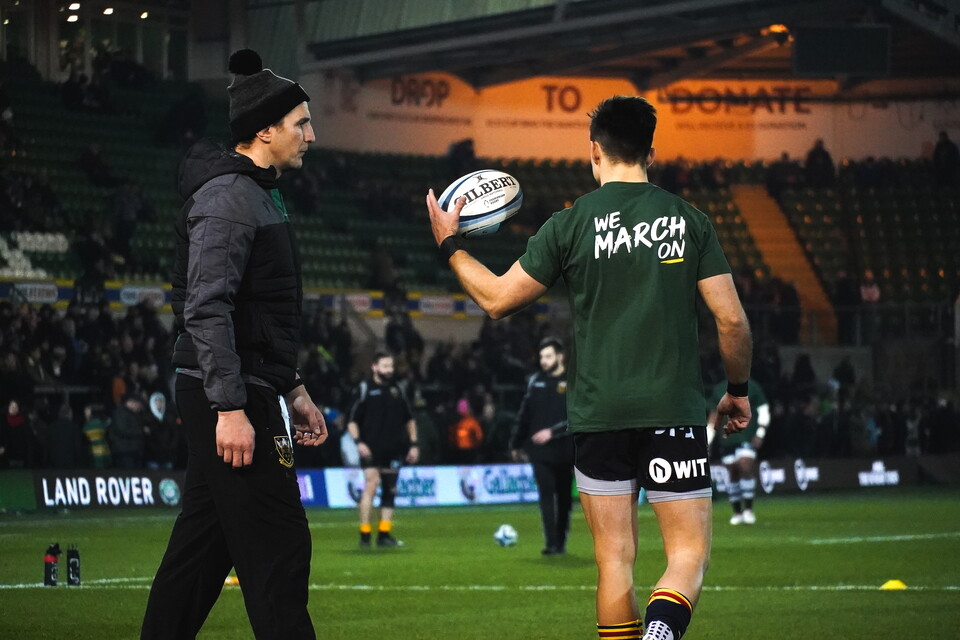 Northampton Saints are offering supporters the chance to win a limited edition 'We March On' bobble hat and T-shirt worn by the players.
