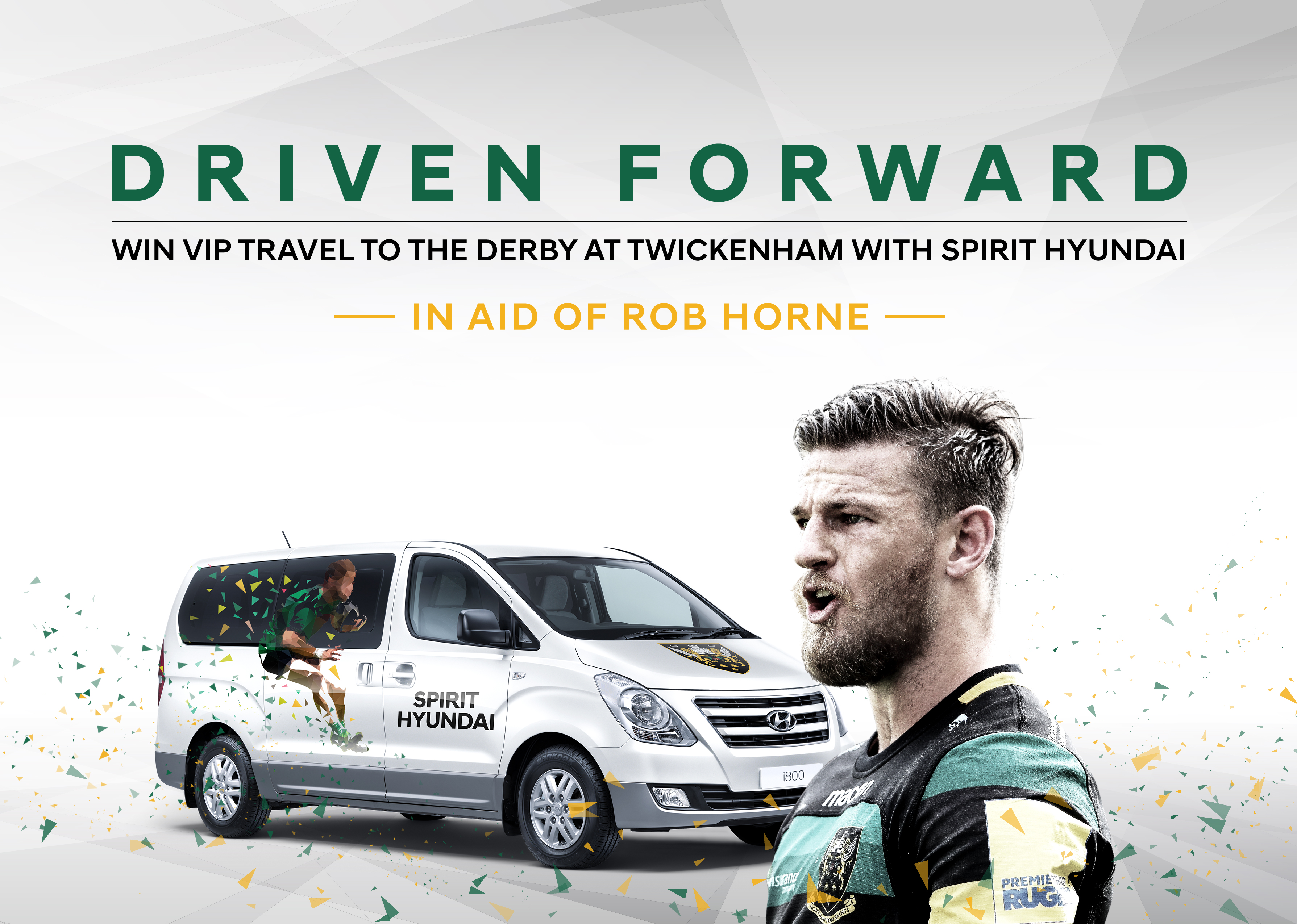 Northampton Saints Official Vehicle Supplier Spirit Hyundai are giving supporters the chance to win VIP travel to The Derby at Twickenham in aid of Rob Horne.
